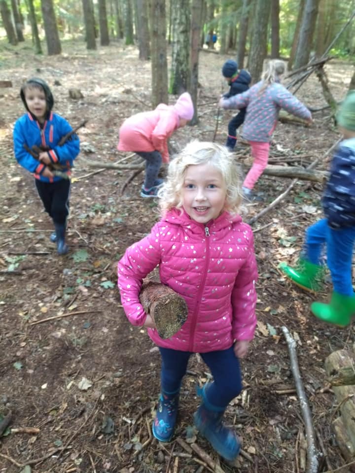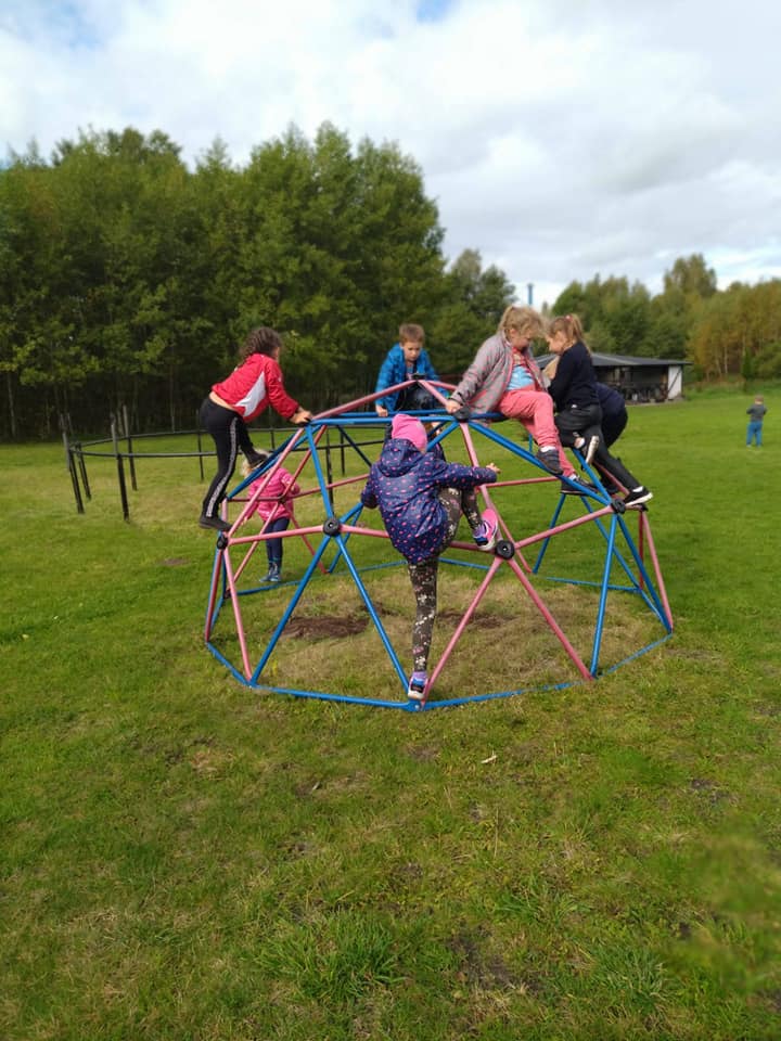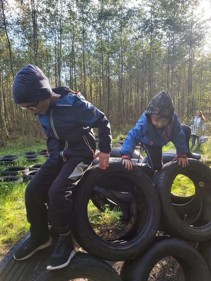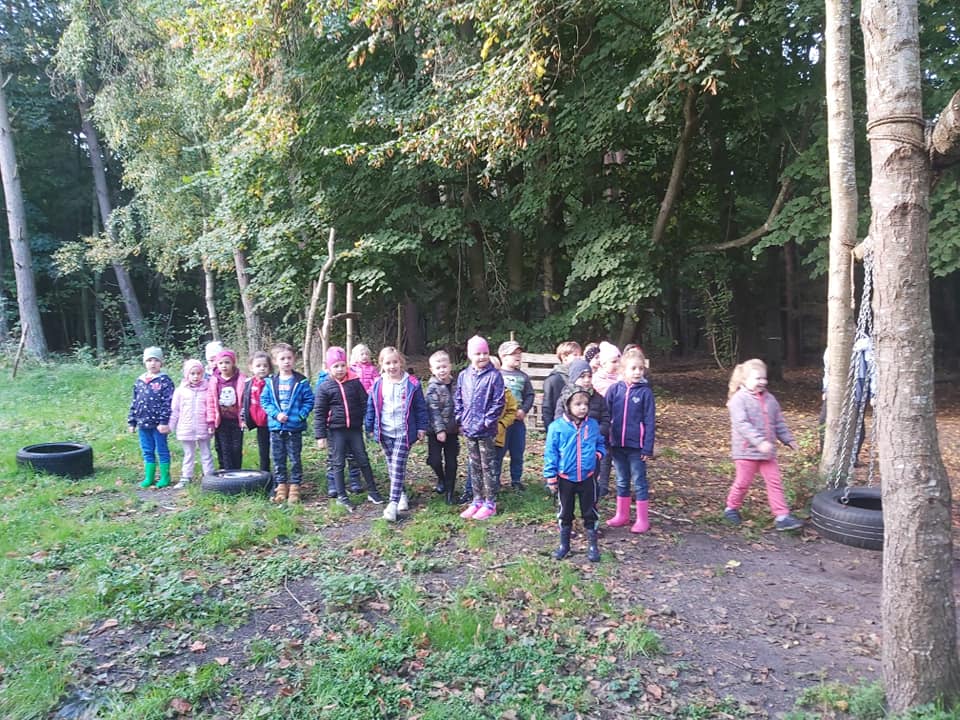 Outdoorowa integracja przedszkolnych Ekoludkow i klasy I w Zielonej Sali Leśne Psoty w Darłowie.