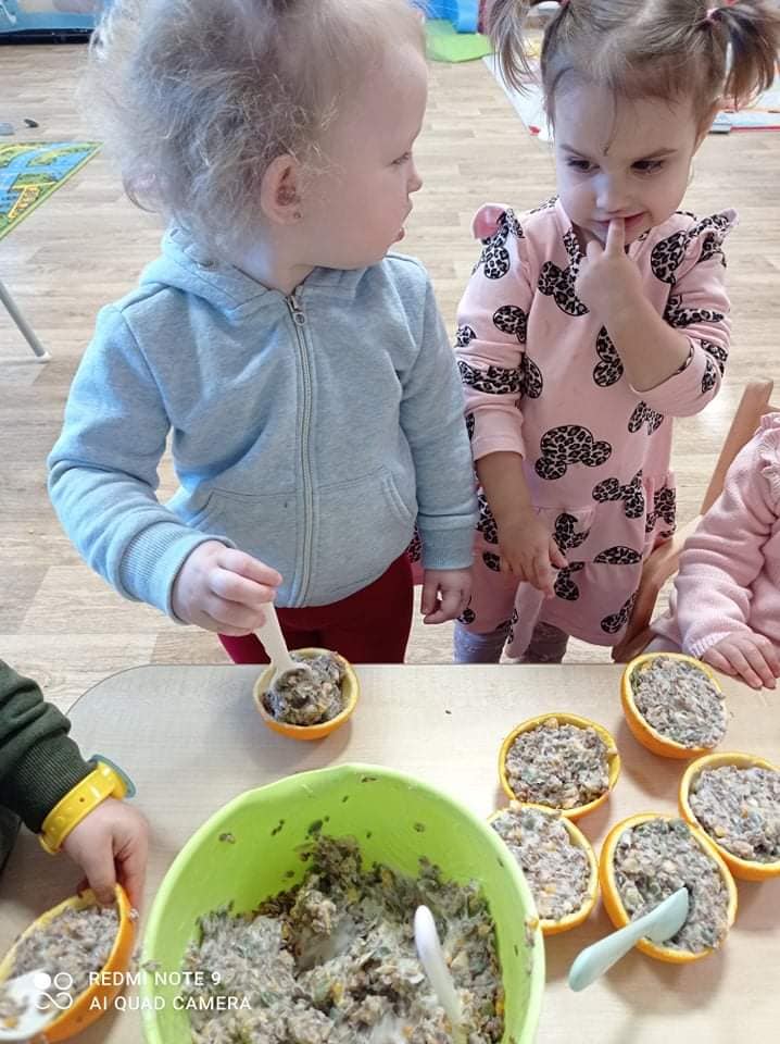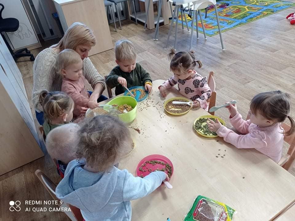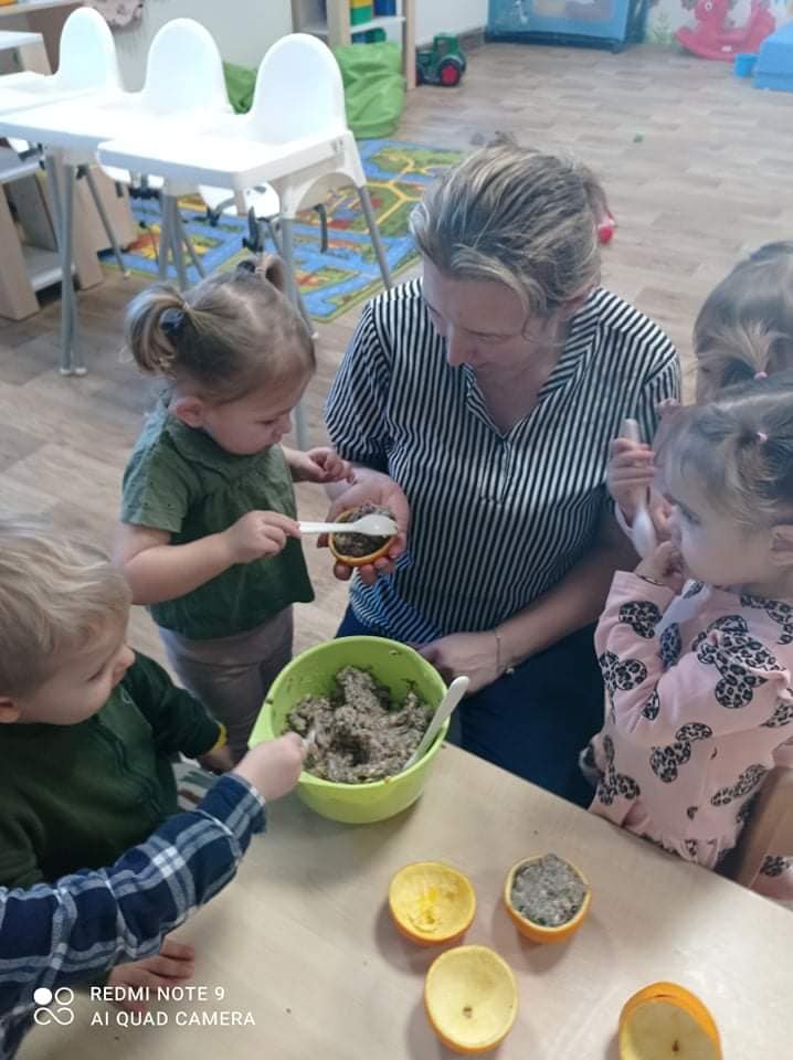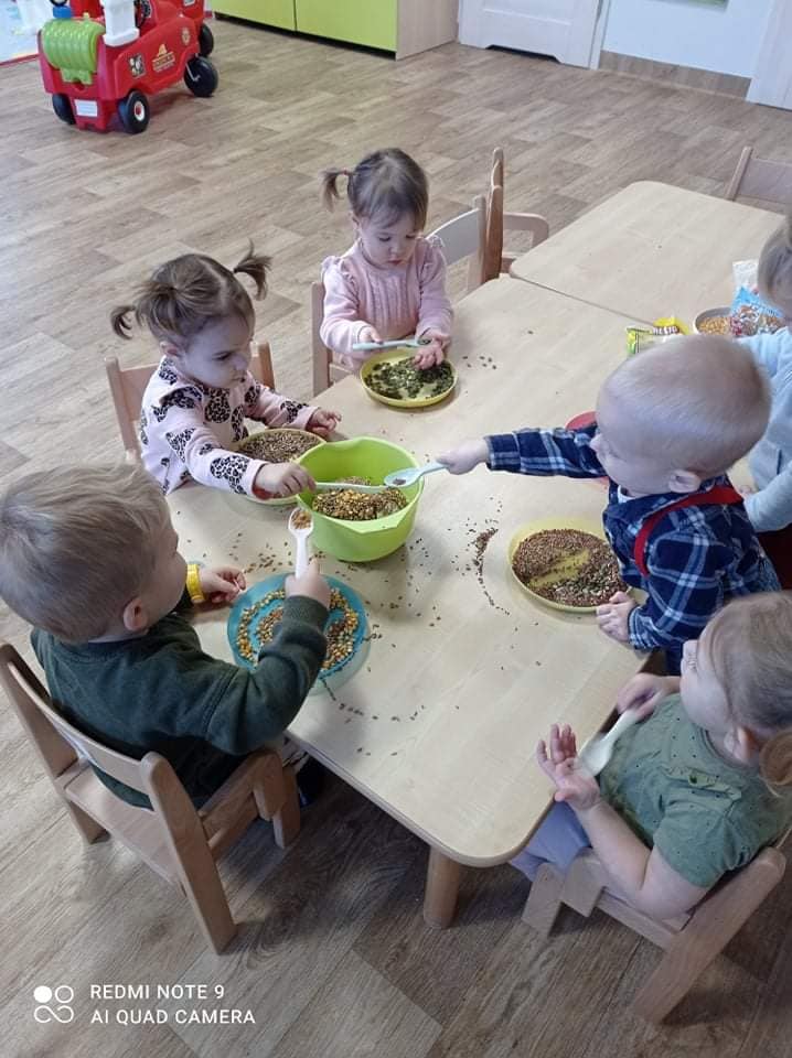 Ptasia stołówka w wykonaniu naszych żłobkowiczów grupa 🐬🦀.