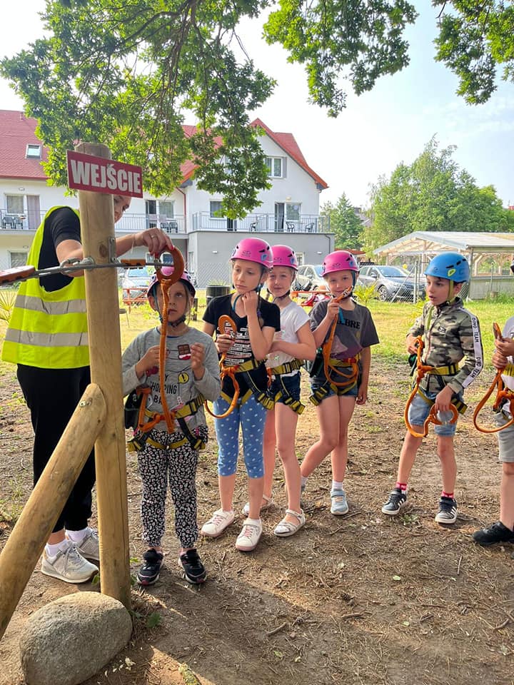 Klasa 1 tuż przed wakacjami sprawdzała swoją sprawność fizyczną, pokonywała swoje lęki w parku linowym Linilandia w Wiciu.