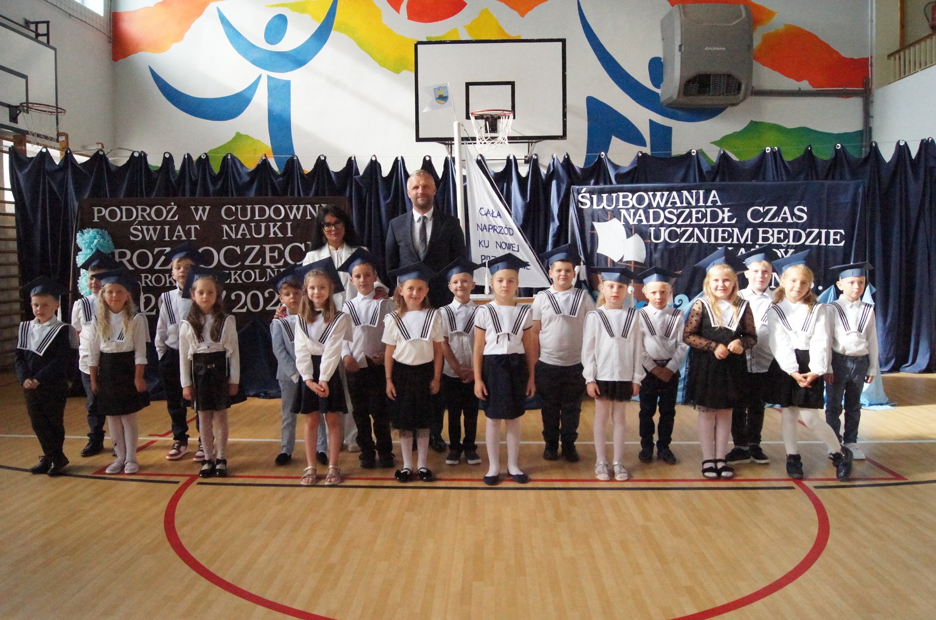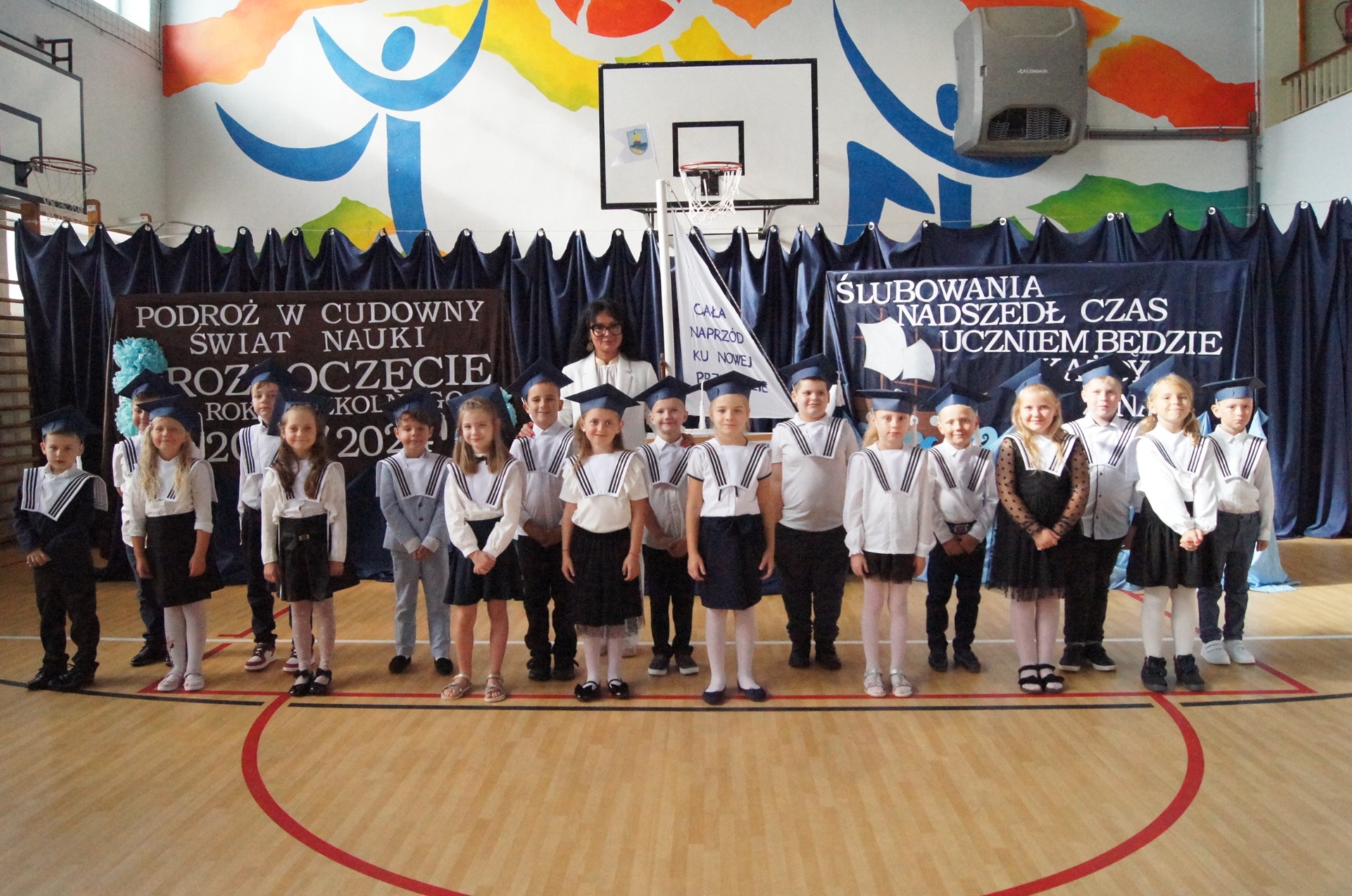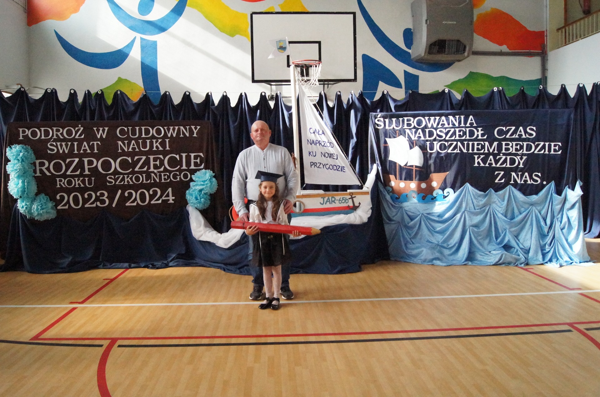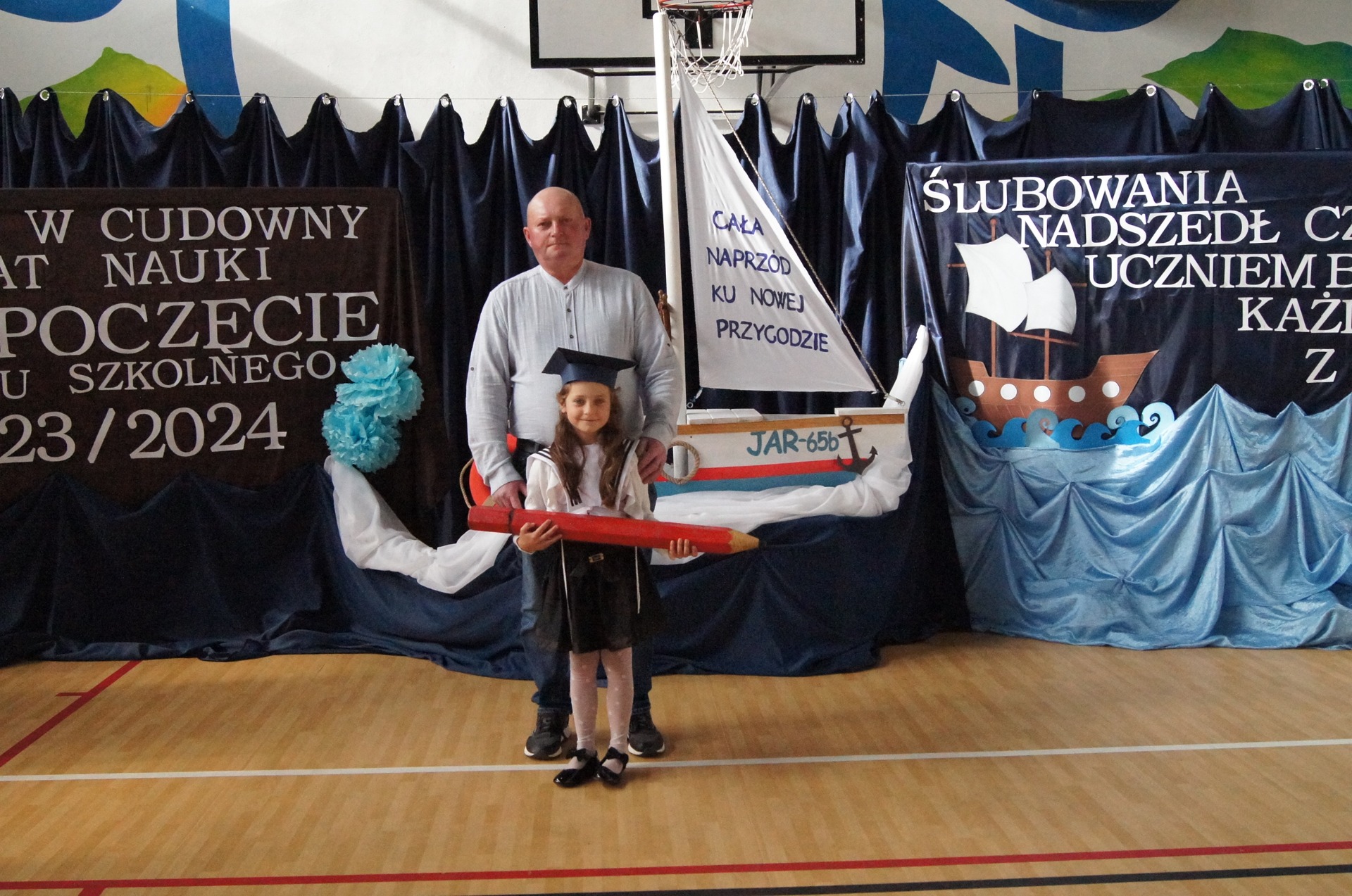 W imieniu całej naszej społeczności szkolnej życzymy naszym pierwszakom samych bezpiecznych przystani, życzliwych ludzi, a także wielu wspaniałych i ciekawych przygód. Do zobaczenia w porcie "Klasa IV".