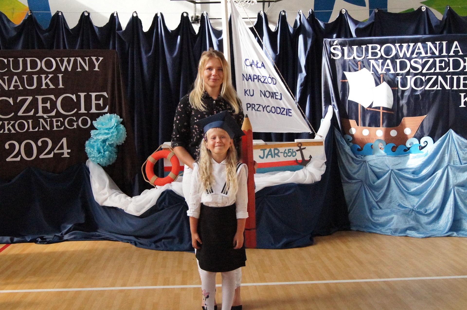 Ledwo dwa miesiące temu ich statek dotarł do portu końcowego o nazwie "Koniec przedszkola", a już dzisiaj nasi "marynarze" wsiadali na nowy statek pod wodzą nowego kapitana (Pani Róża Tama) i wyruszyli w kolejny rejs pełen przygód i niespodzianek.